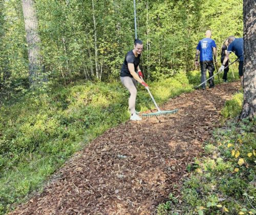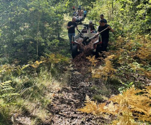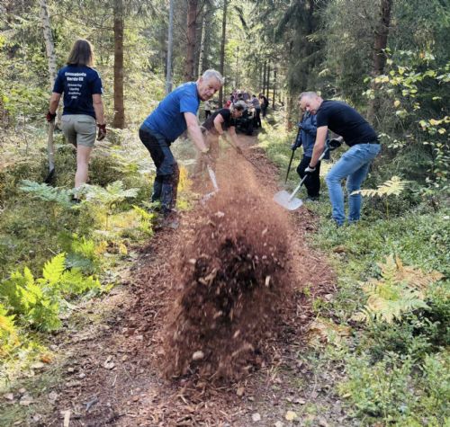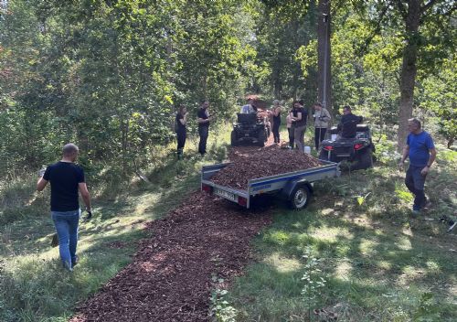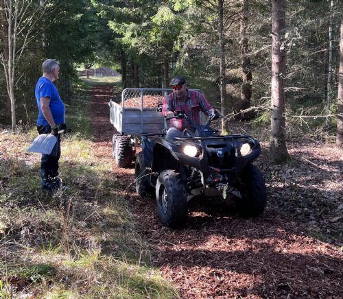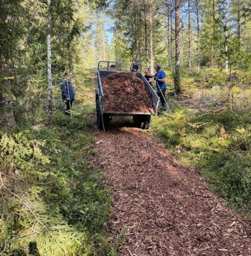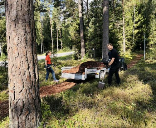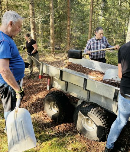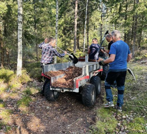 Arbetsdag i Skäveryd 2025-08-31. Vi tackar sponsorerna Vida (för barken) och SML Trading AB (för transporten)!