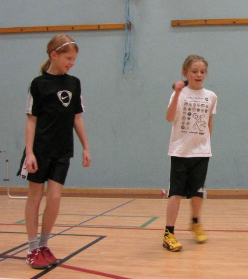Carl sköter datorn för innesprinten. Ellen och Per ska springa.
